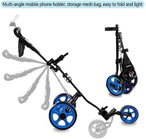 HEIGHT ADJUSTABLE HANDLE: golf cart collapsible, golf bag push cart for different heights. golf push carts 3 wheel folding weighs 11 pounds, max weight capacity of 33 lbs