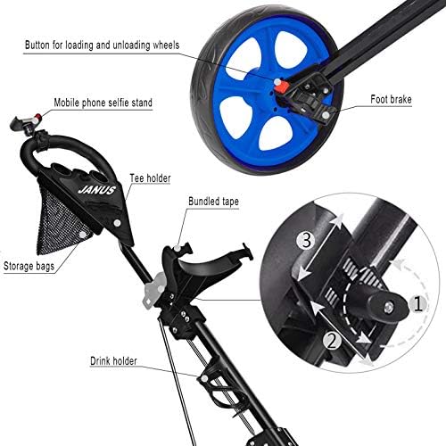 JANUS Golf Push Cart, Golf cart for Golf Clubs, Golf Pull cart for Golf Bag, Golf Push carts 3 Wheel Folding, Golf Accessories for Men Women/Kids Practice and Game
