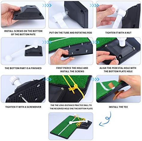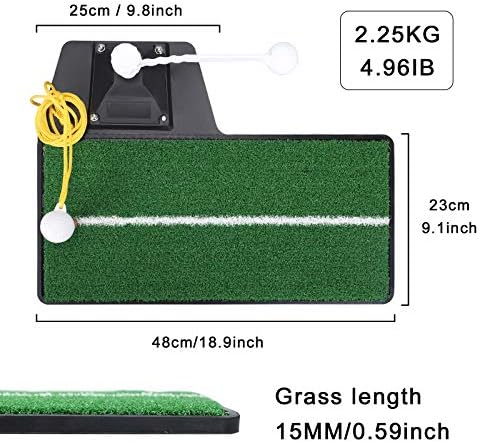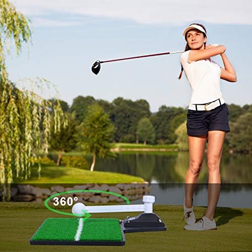 【3-in-1 Design】- Our golf practice swing mat with a rod can rotate 360 degrees. The ball with the line can bounce backward without receiving the ball. Multifunctional indoor and outdoor golf mats