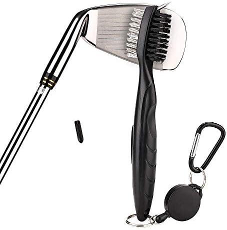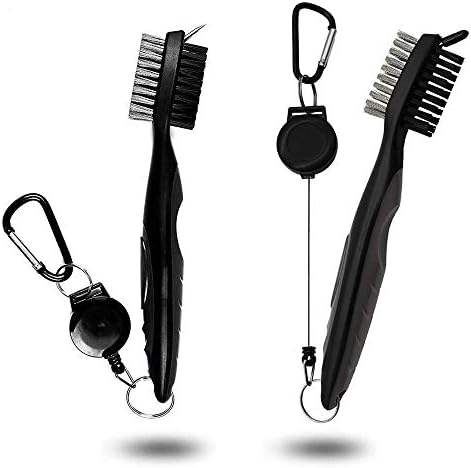Golf Brush:Wire bristles for quick and efficient cleaning of irons while on the fairway and nylon bristles for easy cleaning of woods. Sharp pick for stubborn dirt and grime in grooves.2-Ft Retractable Zip line can easily for reach and use for your playing.