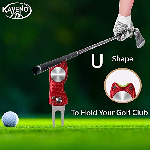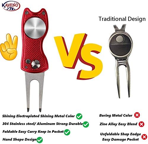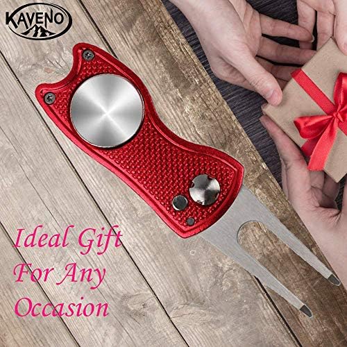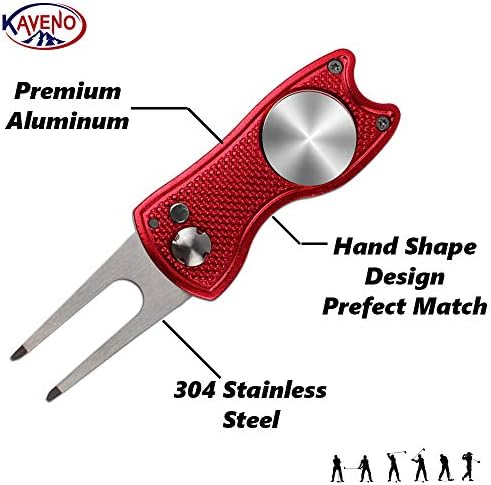 kaveno Golf Divot Repair Tool, Foldable Pop-up Button Stainless Steel Switchblade & Detachable Golf Ball Marker