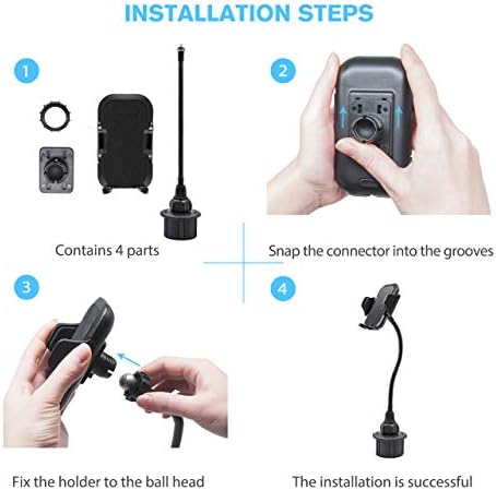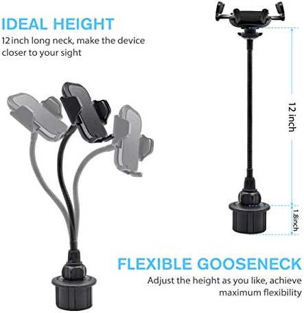 Kuelor Car Cup Holder Phone Mount, Adjustable Long Arm Cell Phone Holder with 360° Rotatable Cradle for Most Smartphones Such as iPhone, Samsung and GPS