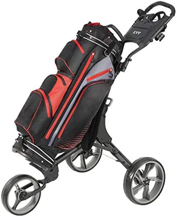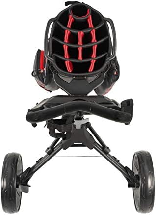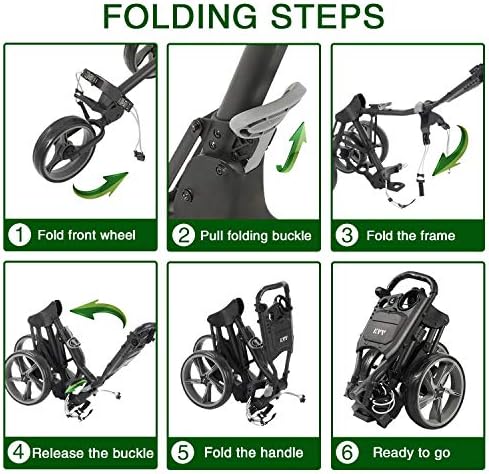 LIGHTWEIGHT AND DURABLE DESIGN: The cart comes with strong and light aluminum frame which shows outstanding sturdiness and stability. It weighs only 13.6lbs, is very portable for both storage and transportation. It is equipped with upper and lower brackets with elastic straps which can coordinate with any size of golf bag.