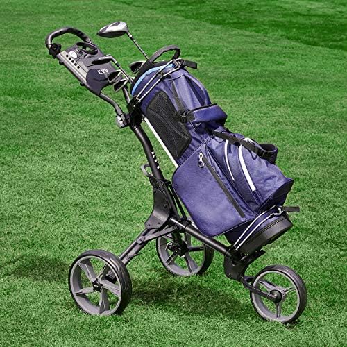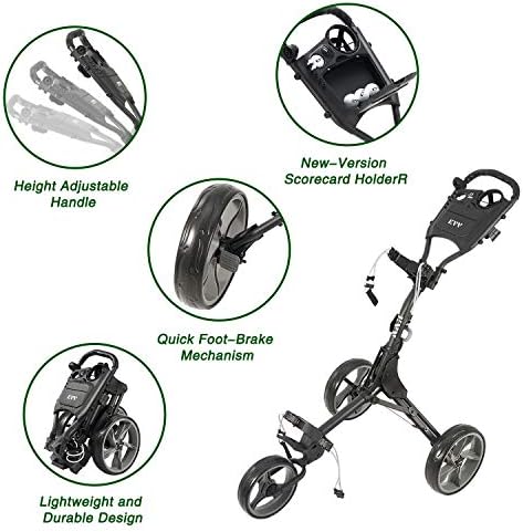 KVV 3 Wheel Golf Push Cart Ultra Lightweight Smallest Folding Size, New-Version Scorecard Holder