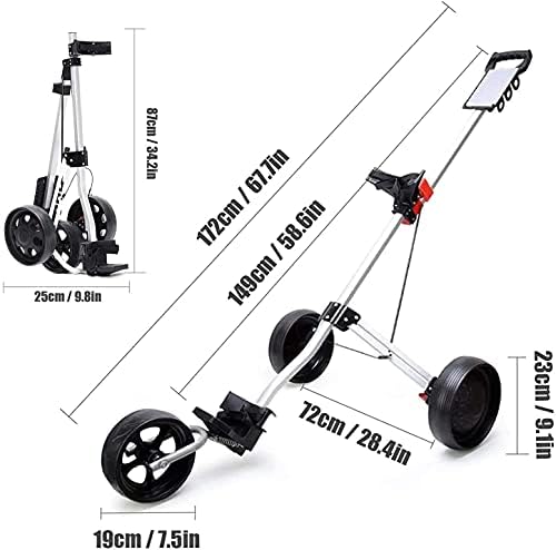 [Size of Golf Cart]This push cart opens and folds in one second.The cart size:102cm x 32cm Weight: 3.3kg which makes it compact and easily fit in the trunk of your car.