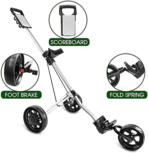 KXDLR Golf Push Cart, 3 Wheel Golf Cart Swivel One Second Folding Golf Trolley with Scoreboard Foot Brake, Push Pull Golf Carts for Golf Clubs Bag Men Women/Kids Practice and Game