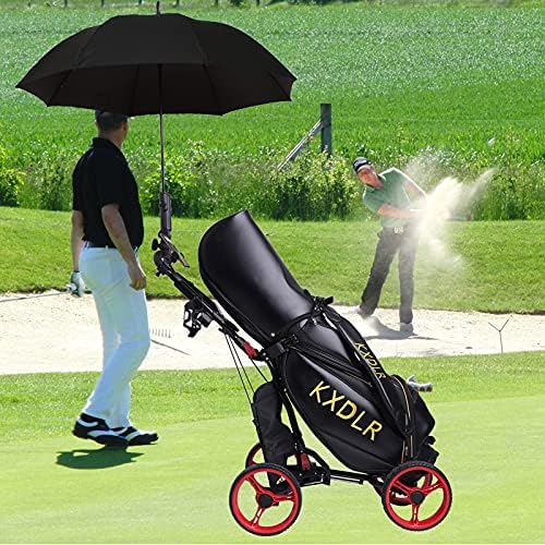 KXDLR Golf Push Cart, Folding 4 Wheel Golf Trolley for Golf Bag, Lightweight Compact Golf Caddy with Umbrella Holder, Hand Brake, Cup Holder, Push & Pull Golf Cart for Golfers/Clubs