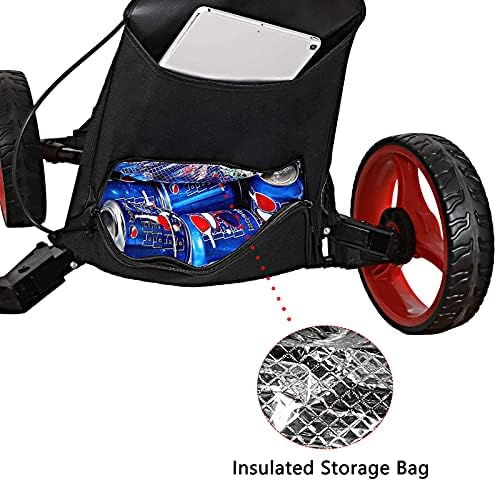The insulated attachment behind the cart can easily hold 4 beers and a cold pack. It is great for keeping cold items.