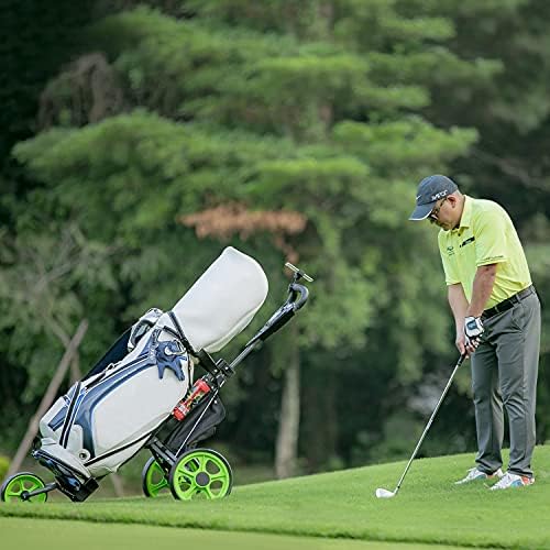 【Easy to Move&Brake】- The golf cart comes with strong aluminum frame which shows outstanding sturdiness and stability three wheels, provide a smooth ride and perfect traction on all kinds of terrain. Simply tap the break with your foot to engage the brake, then tap with your foot again to release the brake. No need to worry about that the cart will lose control.