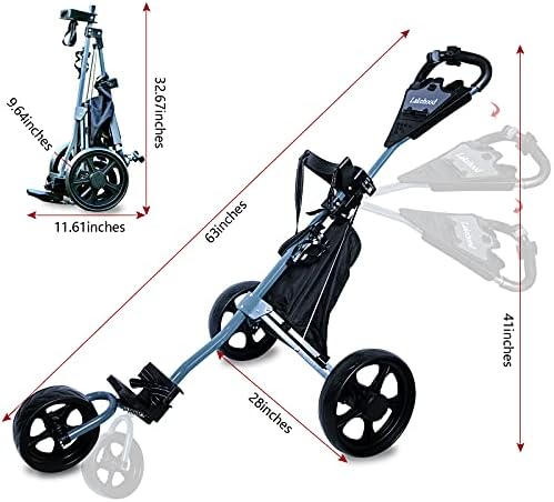 Lakehood Golf Push Cart, Golf Pull Cart for Golf Clubs and Golf Bag, Golf Push Carts Three Wheel Easy to Folding Scorecard Holder with Mobile Phone Holder Storage Bag Golf Carts