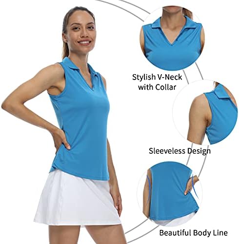 LastFor1 Women’s Sleeveless Polo Golf Shirts Quick Dry 50+ UV Protection V-Neck with Collar Lightweight Tennis Tank Tops