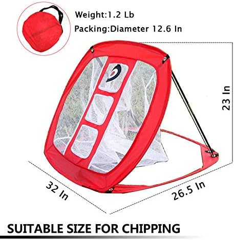 ⛳ Begin in Seconds⛳: Assemble in seconds! Our golf chipping net uses instant pop-up design so that you can set it up in seconds without tools. Save your time and money to improve your golf level and your ball striking skills.