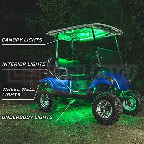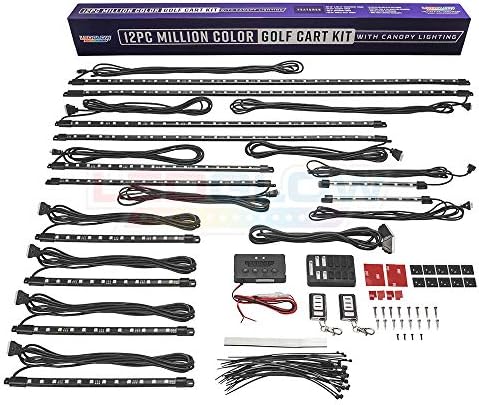 LEDGlow 12pc Million Color LED Golf Cart Underglow Accent Neon Lighting Kit with Canopy, Wheel Well & Interior Lights for EZGO Yamaha Club Car – Fits Electric & Gas Golf Carts – Water Resistant