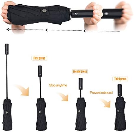✪ ANTI-REBOUND SAFETY UMBRELLA: Travel umbrella compact has a unique automatic locking mechanism that keeps the lever stable at any length to prevent injury. Press inward you can stop anytime, don’t worry about rebounding. Umbrellas for rain women!