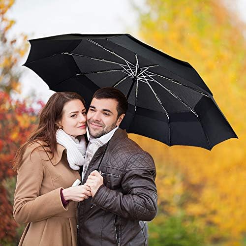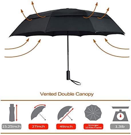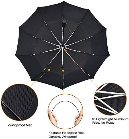 ✪ WINDPROOF UMBRELLA: Full reinforced 10 aluminum fiberglass ribs and axis along with double canopy,double layer windproof net travel umbrella allows the wind easy to pass through,it also prevents overturning or breaking in strong wind gust. Moreover, our strong umbrella 10 ribs and stainless steel frame system cries out NO rust, NO breaking.