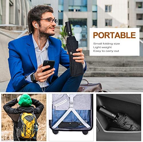 ✪ WATER-REPELLENCY with FULL AUTOMATIC :The canopy is made of the high density 210 waterproof Teflon material that achieve fast-drying and waterproof function .Full automatic open close operates quickly allowing you to open this auto umbrella in seconds in sudden rain, great for quick entry into a car, building, or tent.It is collapsible to fit in the backpack, luggage bag, and business briefcase,etc. Easy and convenient to carry it at golf courses,hiking,or traveling.