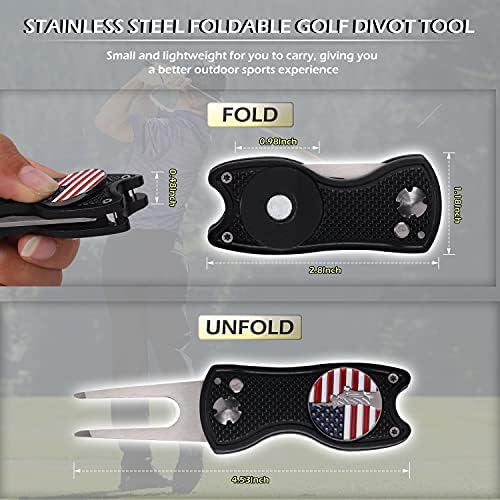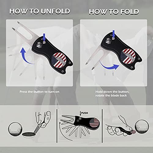 Foldable & Safe to Use: The fork can be folded up with the pop-up button, you can press the spring button to easily open and close the golf divot repair tool, this considerate design can avoid the pointed fork scratching your pocket or hurting your fingers.