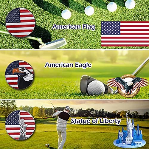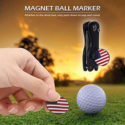 Combination Package: 2 count black stainless steel golf divot tool and 15 magnetic golf ball markers. The golf ball markers have 3 assorted patterns, American flag, American eagle and Statue of liberty.