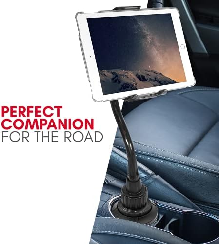 The Macally MCUPTABPRO is a fully adjustable car cup mount that allows you to use your iPad or tablet for navigation and to entertain passengers. The holder fits any Apple or Android tablets as well as iPhones or Android smartphones that are between (3.5 inches) and (8 inches) wide (with or without a protective case). The soft cushioning on the holder provides a secure grip and protects your smart device from scratches. The extra-long & upgraded 12-inch adjustable neck and 360-degree rotatable holder, bring your tablet within easy reach and offer the best viewing angle.