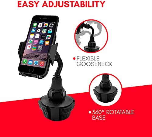 ADJUSTABILITY FOR THE PERFECT VIEWING ANGLE: Regardless of how you sit or where your cup holder is located, the adjustability of our phone car mount can achieve your desired viewing angle with its 360° rotatable cradle & base and flexible neck.