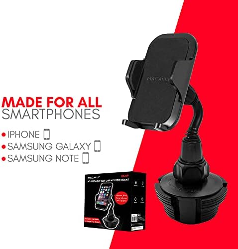 Macally Car Cup Holder Phone Mount [Upgraded Base], Adjustable Gooseneck Cell Phone Cup Holder Cradle Car Mount – Easy Clamp Cradle in Vehicle Compatible with All Apple iPhone Android Smartphone