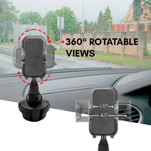 SECURE FIT FOR YOUR PHONE: The last thing you would want is your phone to go flying when driving over a bump. Therefore our cup phone holder features firm clamps and feet to securely hold your phone with or without a case. Fits phones 1.7″ – 4.1” wide.