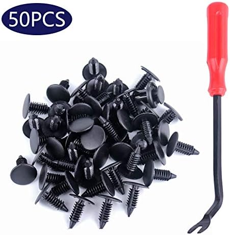 Equipped with removal tool, easy to install, rivets size: 1/4″ x 3/4″, Package Included: 50 pcs plastic push rivets, 1 pcs remover