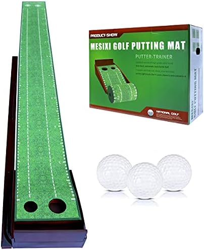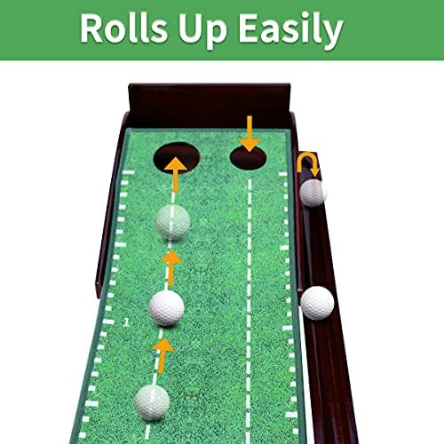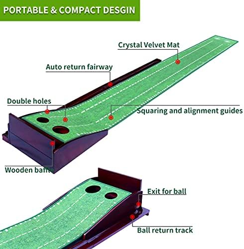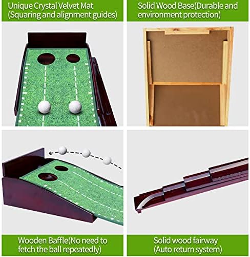 MESIXI Wood Golf Putting Mat Green with Auto Ball Return System Portable Mini Golf Practice Training Aid Equipment Game and Golf Gifts for Men Home Office Backyard Indoor Golf Outdoor Use