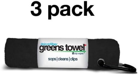 MICROFIBER GREENS TOWEL 3 PACK – Perfect size (16” x 16”) to keep in your back pocket or clip to your belt loop. Take with you to the Driving Range, Greens, and Tee Boxes. Keep clubs and Ball clean and dry for optimum results. Quick wipe equipment after a shot. Perfect for cleaning eye wear with no streaks and chemical free. “The Convenient Microfiber Golf Towel”.