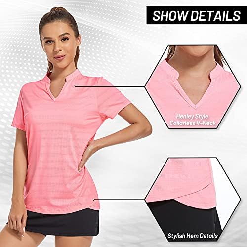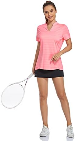 MIER Women’s Golf Polo Shirts Collarless UPF 50+ Short Sleeve Tennis Running T-Shirt V-Neck Quick Dry Equestrian Tops