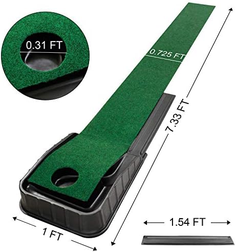 Portable and suitable size: The putting mat length is 7.33FT, the plastic base width: 1FT. mat width is 0.725FT.