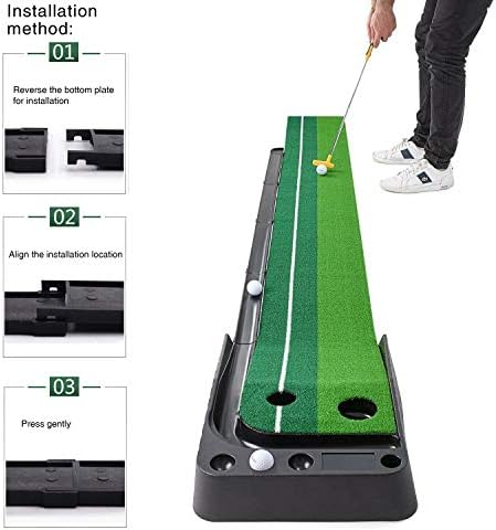 Can be Placed a Putter and 3 Balls: Golf putting green designed that can be placed 3 balls ,which is convenient to put the balls in it and no need put the balls in other place ,and putter hole is designed that you can put your golf putter(not included) on it
