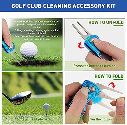 MZ Mzeat Golf Groove Cleaning Tool Set, Microfiber Waffle Pattern Golf Towel, Retractable Club Groove Cleaner Brush, Foldable Divot Tool with Magnetic Ball Marker