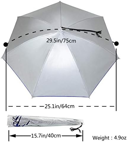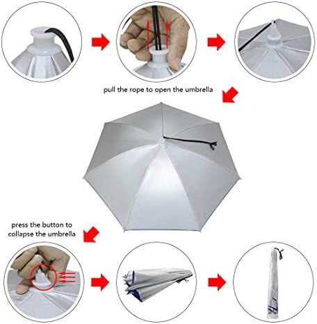 Unique Design: 25 inches in diameters and can be fold as 15.7 inches long which is portable and light-weight. This umbrella hat keeps you dry in rainy days and offer sunshade in summer.