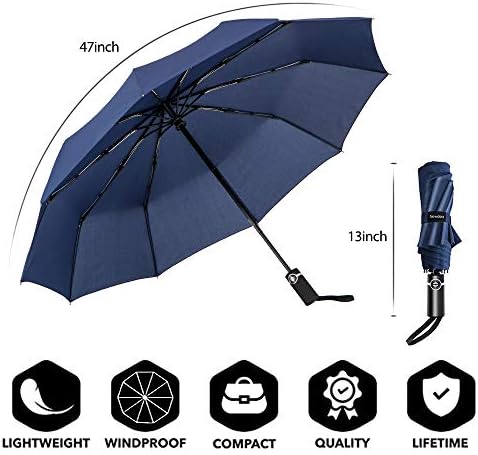 Newdora Windproof Travel Folding Umbrella Golf Umbrella Auto Open Close Button and Upgraded Handle, Lightweight 10 Ribs Automatic Windproof Canopy Compact with Light Reflective-Gift Waterproof Bag