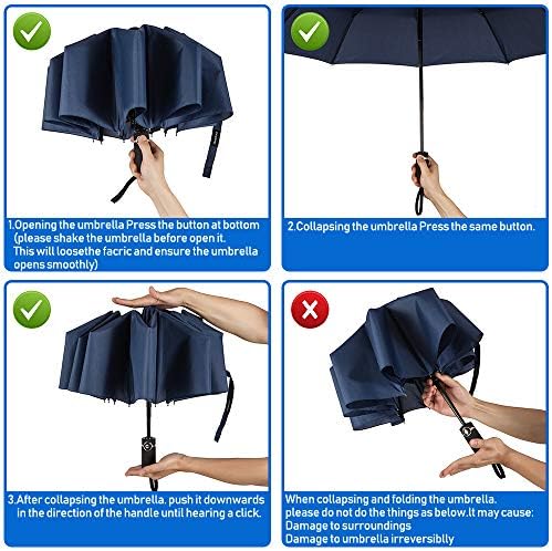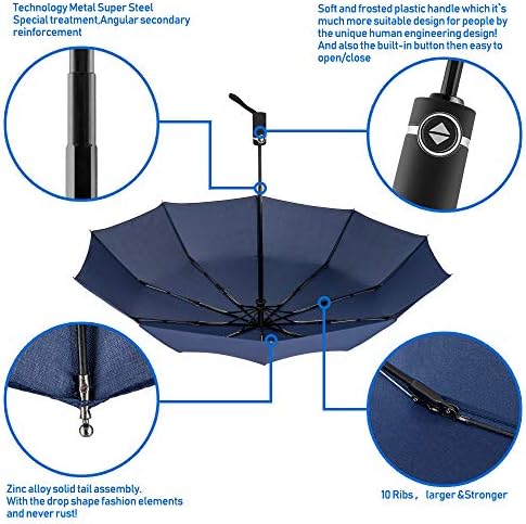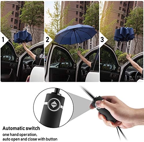☔AUTOMATIC OPENING AND CLOSING: The button allows you to get out and retract the umbrella in less than a second. You can open the umbrella just by pressing the button and close it by the button too. This design makes using the umbrella more efficient and convenient, and won’t cause you problems on rainy days.