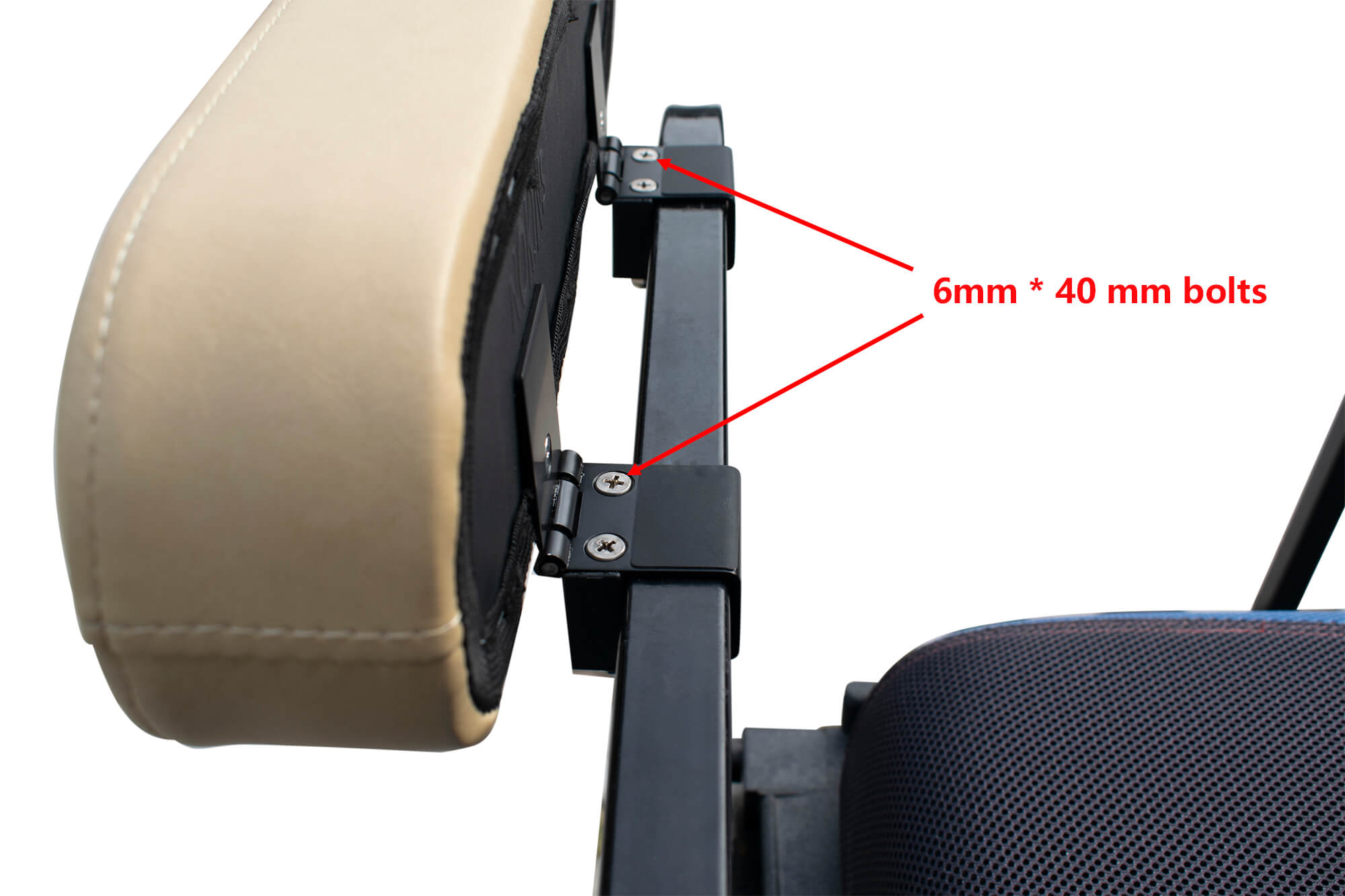 Place the bracket-fixed armrest on the sidebar of the rear seat kit, and then fix it with 6mm * 40mm Cross Large Flat Head Bolt