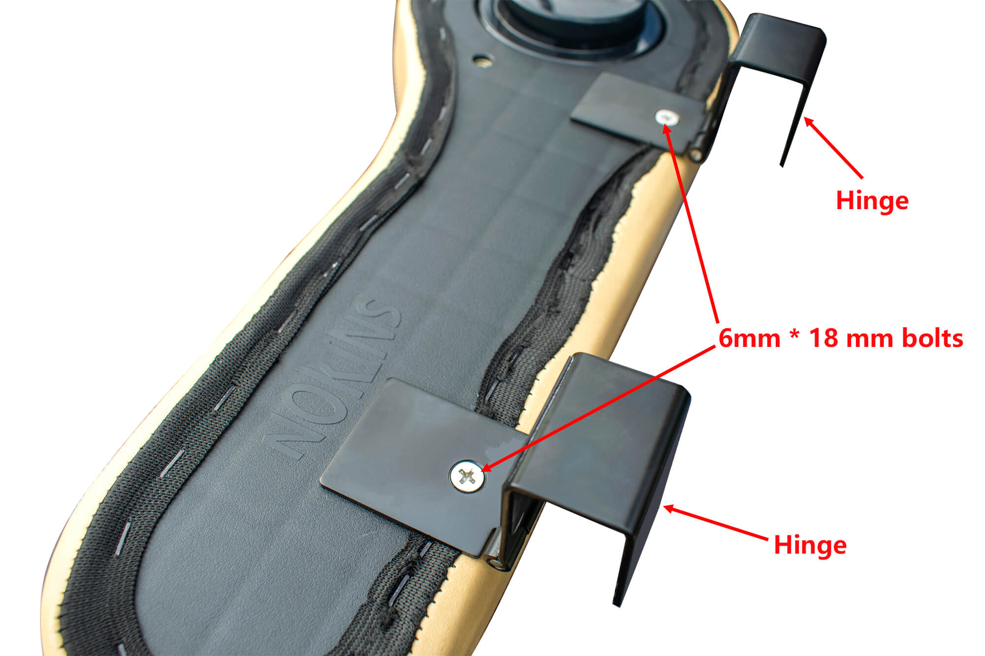 Note: U-25 damping hinge is suitable for carts with 1-inch square armrests in the rear seats. The stainless steel damping hinge prevents the armrest from bouncing when the golf cart is running.Tighten the screw slightly to fix the damping hinge. Do not over tighten the screws.