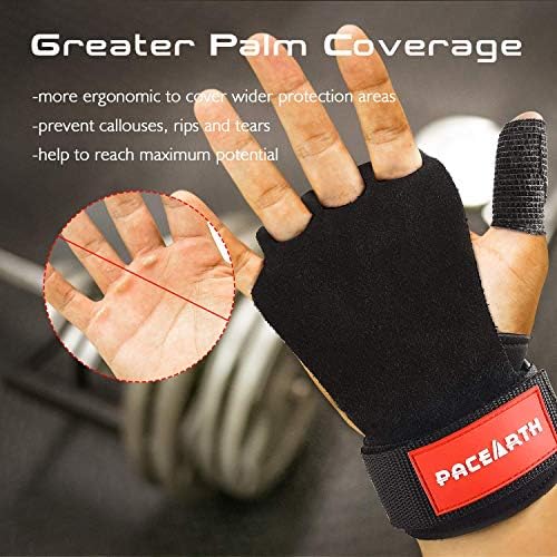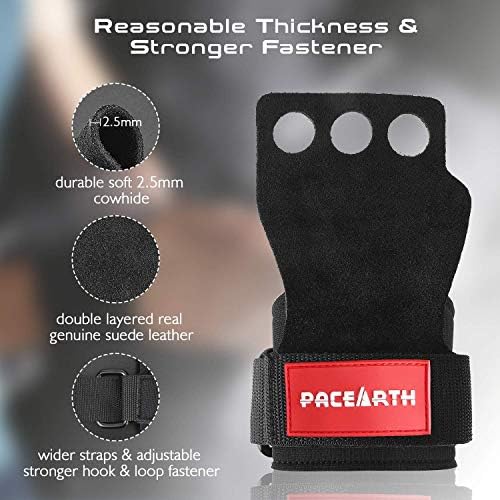 PACEARTH Leather Gymnastics Hand Grips, 3 Hole Gloves with Comfortable Palm Protection-Great for Pull-ups, Wods,Weight Lifting,Kettlebells and Cross Training