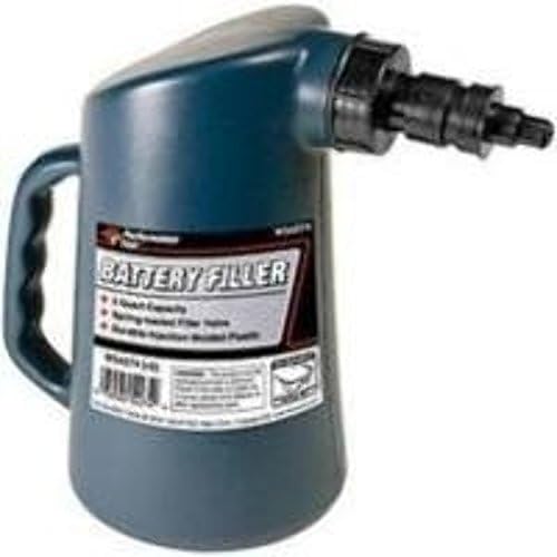 This 2-quart battery filler from Performance Tool offers a convenient spring-loaded filler valve that helps keep any shop, garage, or workplace clean. Durable injection molded plastic makes this a tough and long-lasting addition to any tool kit. Perfect for checking and filling water in the golf car carts, this battery maintenance tool takes the chore out of watering batteries. Also great for keeping RV batteries, and other vehicles running smoothly, this measuring tool is a great addition for anyone that deals with vehicle maintenance.