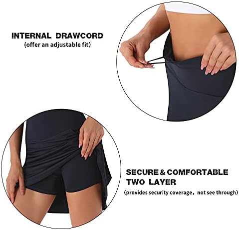 Secure & Comfortable Two Layer: Our womens athletic skirt has two layers, an outer skirt with built-in flexible inner shorts, provides security coverage, enhances your range of motion, not see-through when you’ve been sweating on the court, breathable and comfortable cool during a hot day.