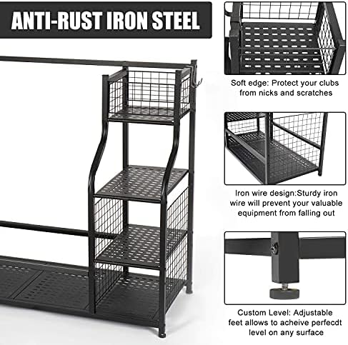 【EQUIPMENT SAFETY】: Soft edge design of this golf storage rack will protect your clubs from nicks and scratches. Iron wire design will prevent your valuable equipment from falling out.