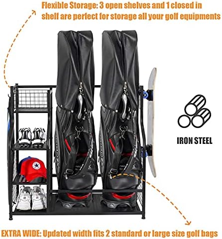 PLKOW Golf Bag Storage Garage Organizer, Fit for 2 Golf Bags and Golf Accessories, Extra Large Size Golf Bag Storage Stand and Golf Equipment Rack for Garage,Shed, Basement