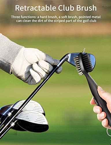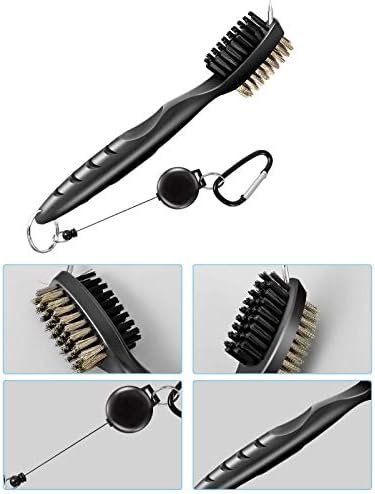 Retractable Golf Brush: A double-sided brush with strong bristles and groove cleaner, which can remove dust and turf on the club/spike, and a sharp tip to remove hard dirt in the groove.