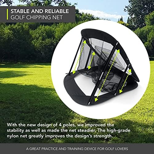 Stable and Reliable: We have optimized the shaking and instability of the 2 poles. With the new design of 4 poles, we improved the stability as well as made the golf practice nets for backyard steadier. The high-grade nylon net greatly improves the design’s strength.