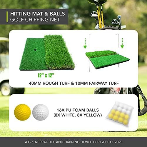 RAGECAMEL Golf Nets for Backyard Driving, Pop Up Golf Chipping Net, Golf Practice Nets for Backyard, with Dual Turf Hitting Mat(40mm Rough Turf & 10mm Fairway Turf), 16x Golf Balls