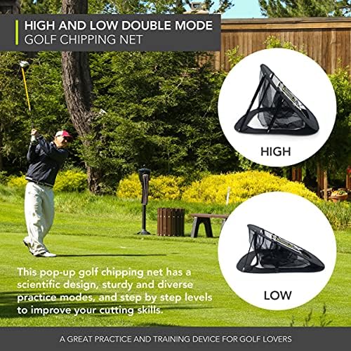 High and Low Double Mode: This pop up golf chipping net has a scientific design, sturdy and diverse practice modes, and step by step levels to improve your cutting skills. The ring target is designed to clarify the goal and improve your precise ball control ability.