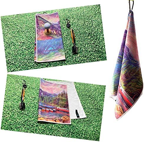 Ralch Wysom Golf Towels for Golf Bags with Carabiner Clip for Men Women, Waffle Microfiber Fabric Landscape Lake Sport Travel Accessories for Ball Clean Wiping Sweat,Size16 x24