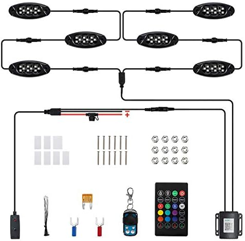 RGB LED Rock Lights, Esky 6 Pods Multicolor Neon Underglow Lighting Kit, IP68 Waterproof LED Accent Lights with APP&RF Control Music Mode Timing Function for Off Road Truck Jeep Car ATV SUV Motorcycle
