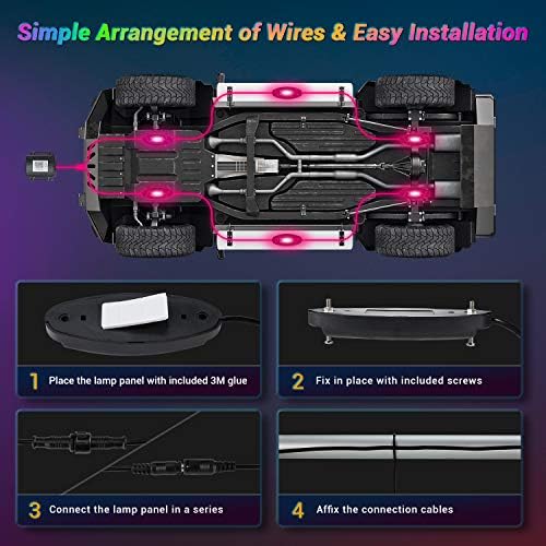 【Upgraded 2-Wire Tandem Design】:To adapt to the wiring layout of more models, the car underglow neon light is upgraded to a 2-wire tandem connection, with 6 light panels connected. Thanks to 6 included 3M light panel back adhesives, installation is a breeze. It additionally comes with screws for better fixing on the car chassis.